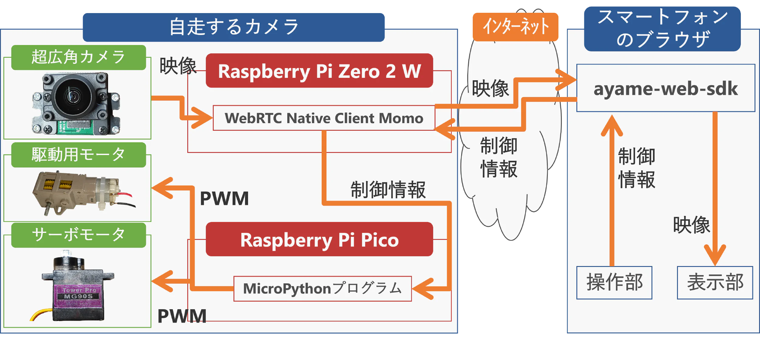 - 映像と制御情報の送受信にはWebRTC Native Client Momoを使用