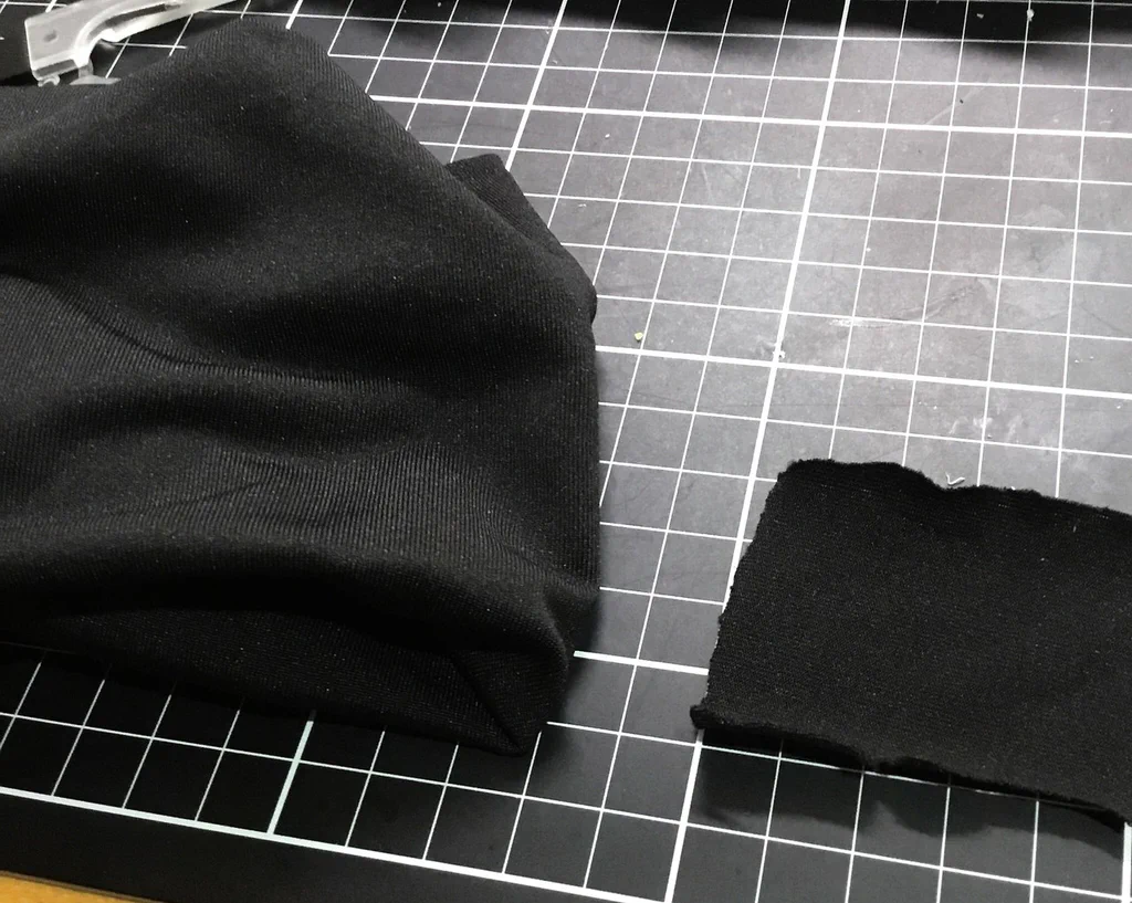 まず、キャップの上部に両面テープを貼り、穴の部分をきり等でくりぬき、空気が通れるようにして、生地を貼り付けました。