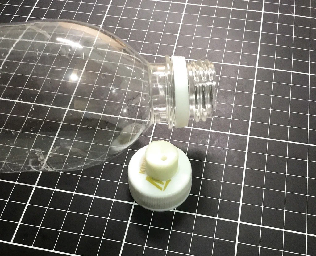 まず、ペットボトルの蓋にこんな感じの加工を施します。