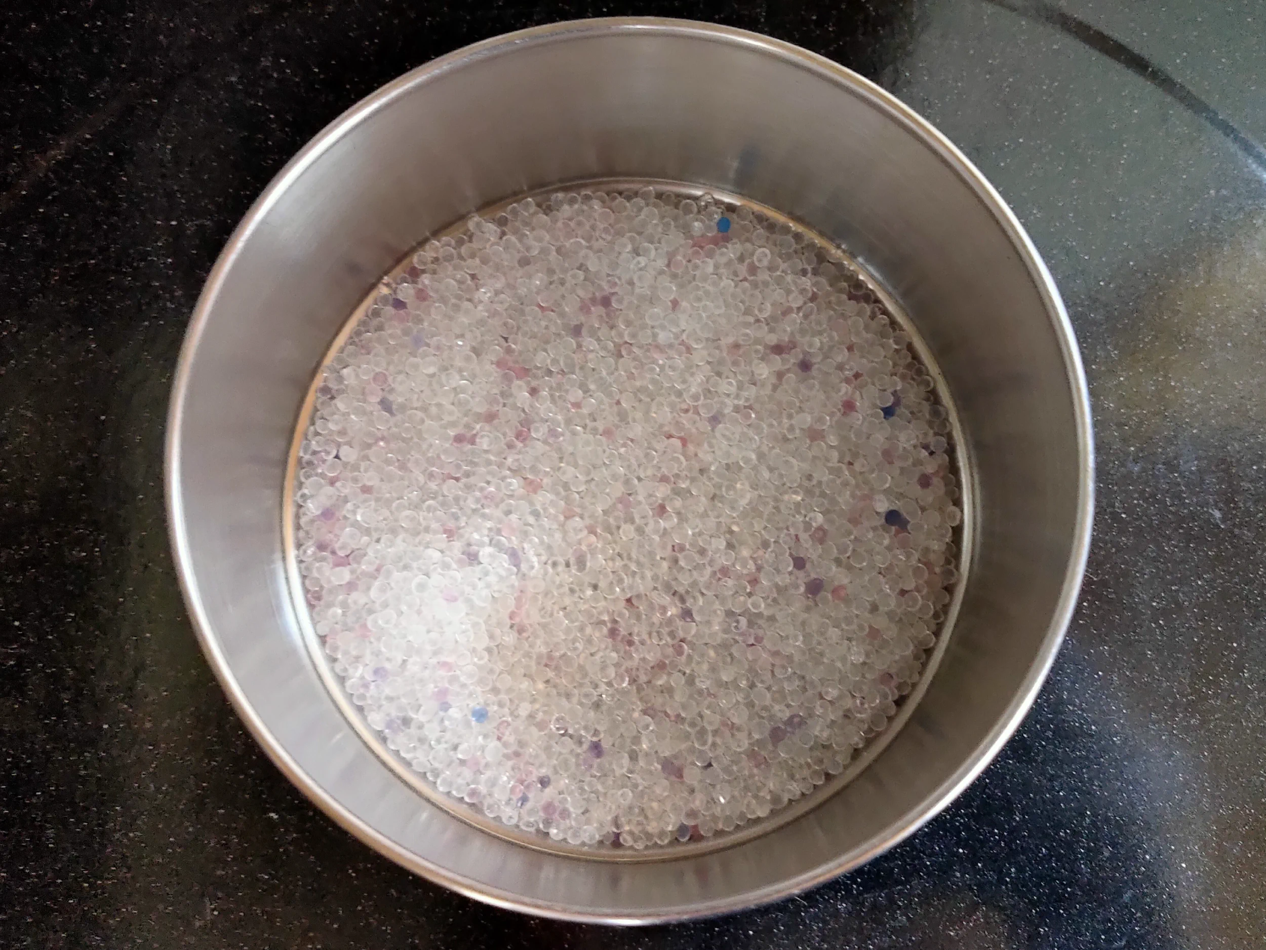 などの方法がある中から,勝手に温度を管理してくれるので失敗しにくいだろうと思い,オーブンを選びました. また,急激に温度を上げると内部の水分が一気に水蒸気になり,シリカゲルが破裂することもあるそうなので,予熱はなしで行いました.