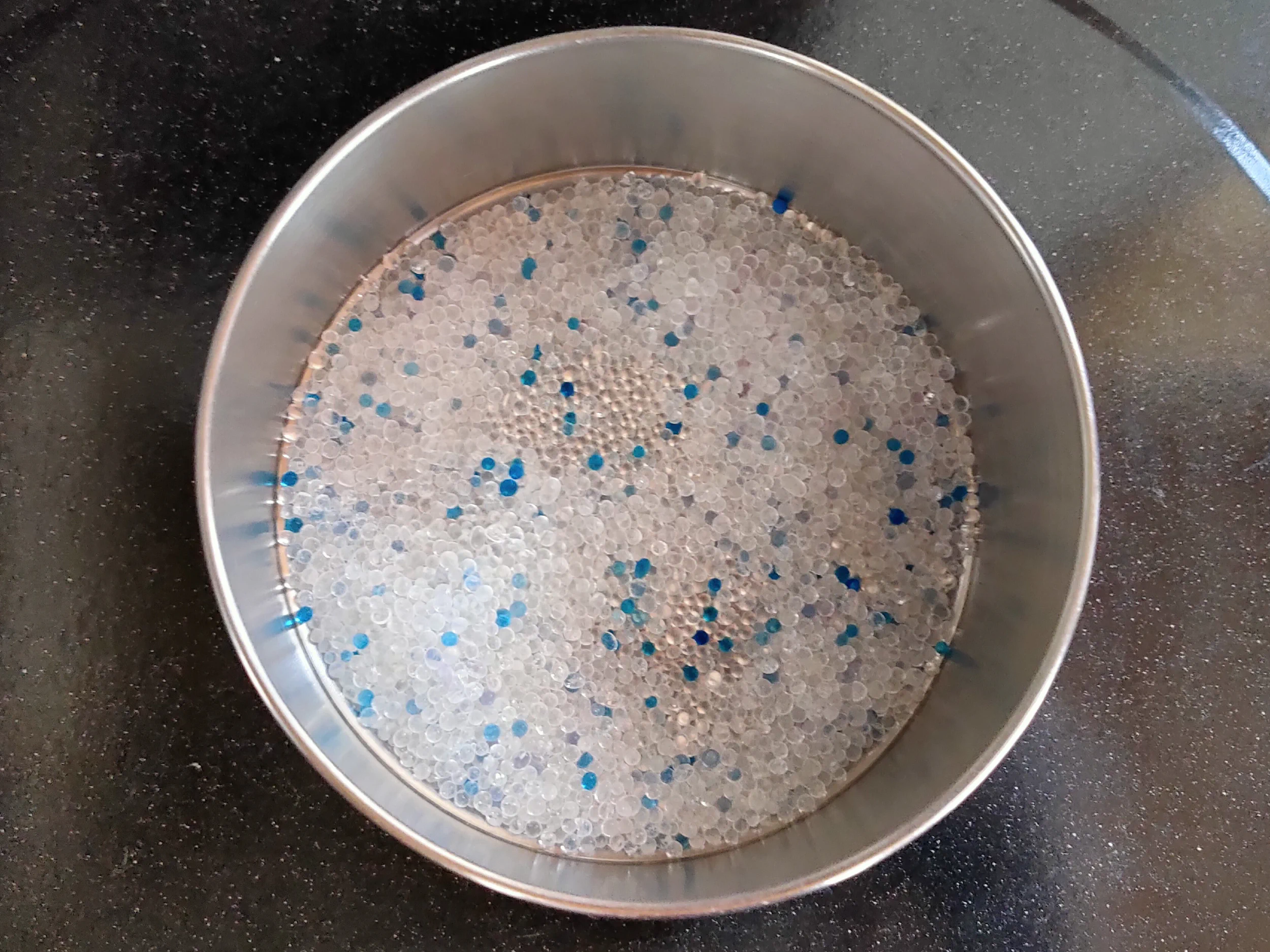 この乾燥に使うシリカゲルは,湿気を吸収しても熱してやるとまた使えるようになるようですので,やってみます.